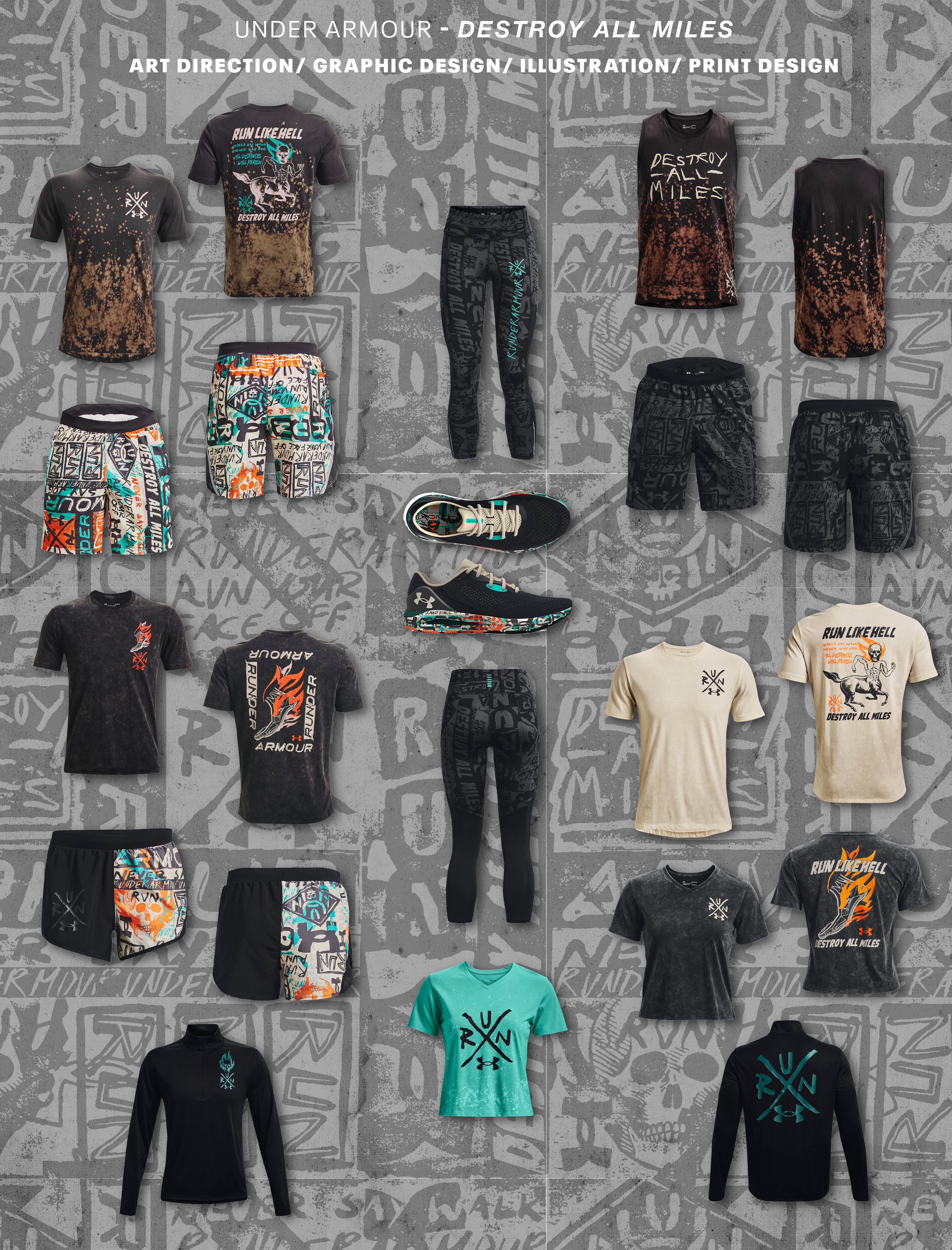 Graphics, print, and conceptual design work for Under Armour's "Destroy All Miles" run apparel collection.